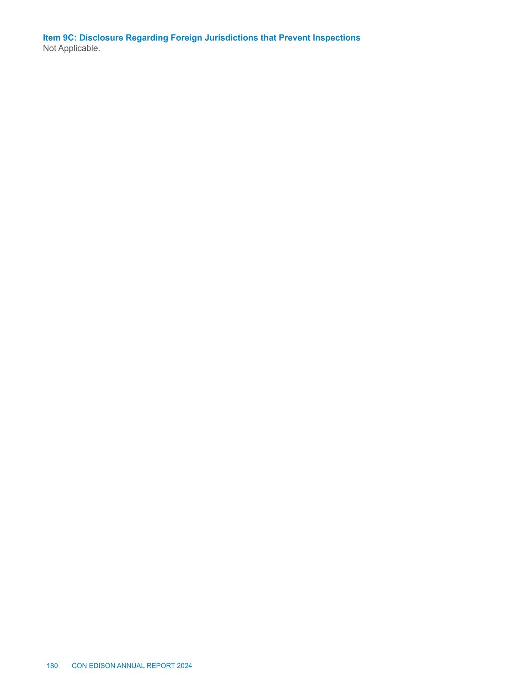 Item 9C: Disclosure Regarding Foreign Jurisdictions that Prevent Inspections Not Applicable. 180 CON EDISON ANNUAL REPORT 2024